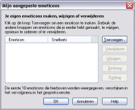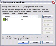 3. Er is nu een klein venster geopend waar al je eigenlijk emoticons in staan. Klik in dat venstertje op "Toevoegen". In het volgende venstertje klik je op "Afbeelding Zoeken". Nu wordt er een weer venstertje geopend waarmee je de locatie van een emoticon moet opgeven (dit is waar je in stap 1 je emoticon hebt opgeslagen.). Wanneer je een emoticon hebt geselecteerd klik je op "Openen". Hierna kom je weer op het tweede kleine venstertje. Vul hier nog een sneltoets voor de emoticon in en eventueel een andere naam en klik op "OK".