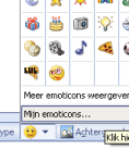2. Open je MSN en open een gesprek venster met een willekeurig persoon (je hoeft niet perse iets tegen hem te zeggen). Klik onderin op het kleine smileytje en vervolgens op "Mijn emoticons".